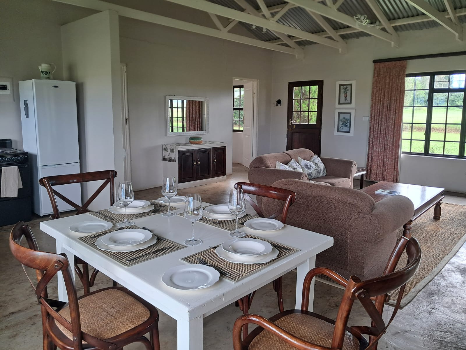 Originally Rose was a chicken shed, but as we got busier it soon got converted into a pleasant 2 bedroom cottage with a wide open plan kitchen, dining and seating area. Compete with a nice fireplace, especially in winter.